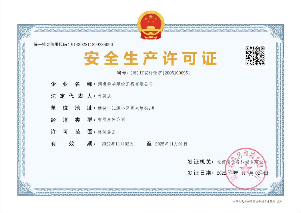 湖南泰華建設工程有限公司一家房屋建筑工程施工總承包貳級,水利水電工程施工總承包貳級,市政公用工程施工總承包貳級,鋼結構工程施工專業承包二級,消防設施工程專業承包貳級,建筑裝修裝飾工程專業承包貳級;公路工程施工總承包叁級,鋼結構、體育設施、環保工程、公路路面工程、公路路基工程專業承包叁級企業。…